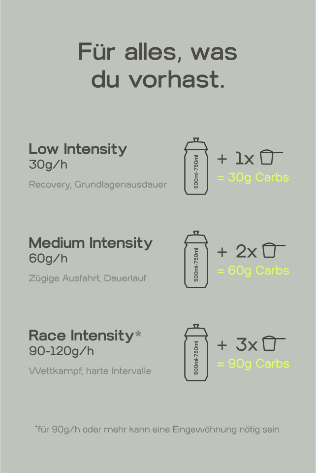 Mit 2:1 bekommst du die gleiche Leistung – bei mehr Magenkomfort und weniger Risiko. Und: Du bist flexibler, egal ob du 60 g/h fährst oder 120.
